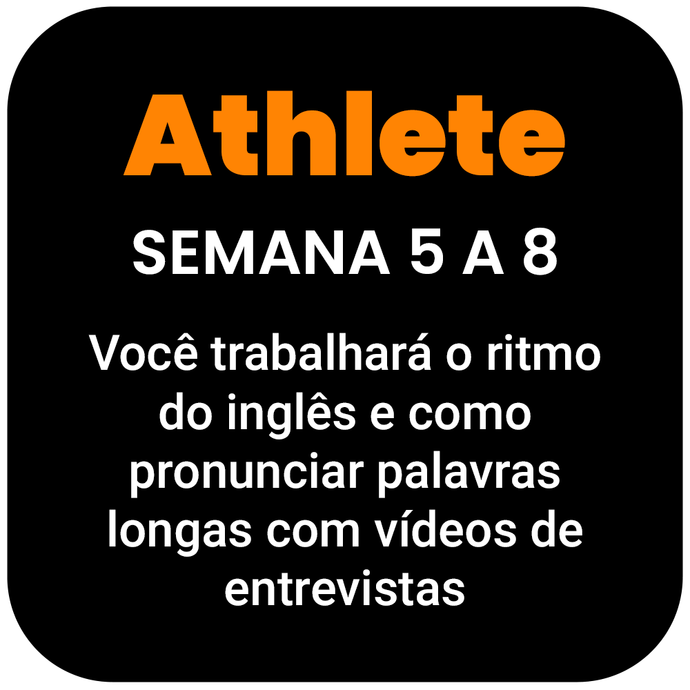 São 12 semanas de treinamento intensivo, com 3 níveis de desafio gradual: Newbie, Athlete e Pro. Voce já consegue ver a mudança na sua fala, pronúncia e escuta a partir do primeiro mês!