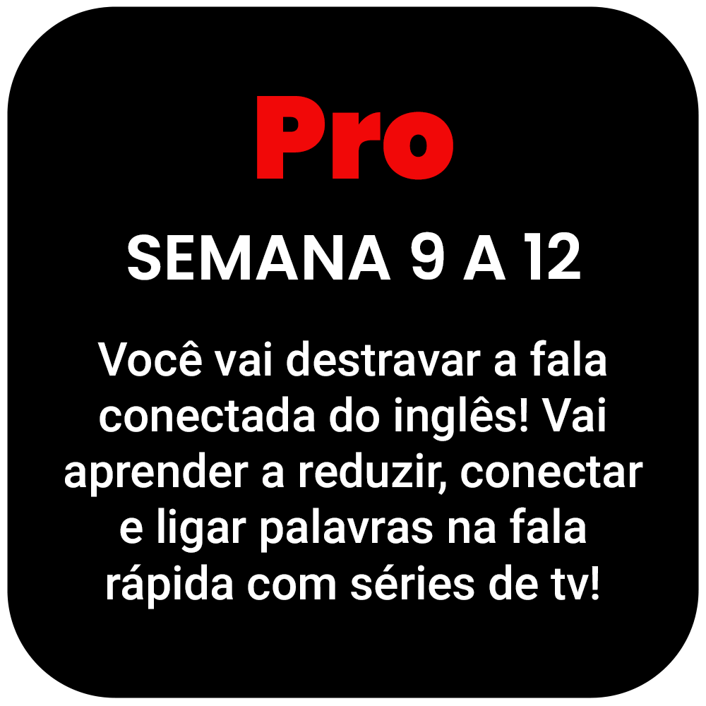 Você NUNCA viu nada assim! Oprah Winfrey, Vin Diesel, Michelle Obama, Taylor Swift, Friends, Grey’s Anatomy, Brooklyn 99…. O Shadowing Power Training te dá o PRIMEIRO curso de shadowing do Brasil e do mundo! São 12 semanas treinando com mais de 60 atividades interativas de shadowing. Ele vem junto meu curso de sotaque - o Accent Lab, meu curso de vocabulário - o Vocab champ e 14 dias de acesso gratuito ao meu curso de pronúncia - o Sounds Natural.